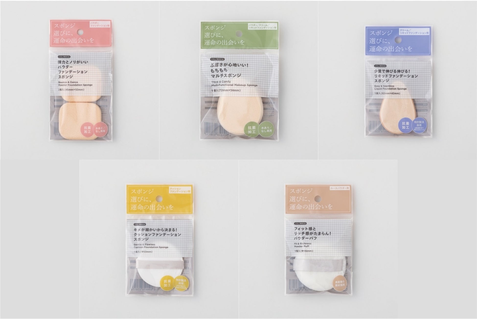 2022年に発売した「5秒で感動メイクブラシ」シリーズが発売以来、メイクアップアーティストや雑誌で高評価を獲得、シリーズ累計販売数も10万本を突破しています。同シリーズに続く、メイクには欠かせないアイテムであるメイクスポンジを、厚み/弾力、抗菌加工、特許製法採用など、メイクの仕上がりと使い心地にこだわり、幅広いメイクに対応した5SKUを開発しました。