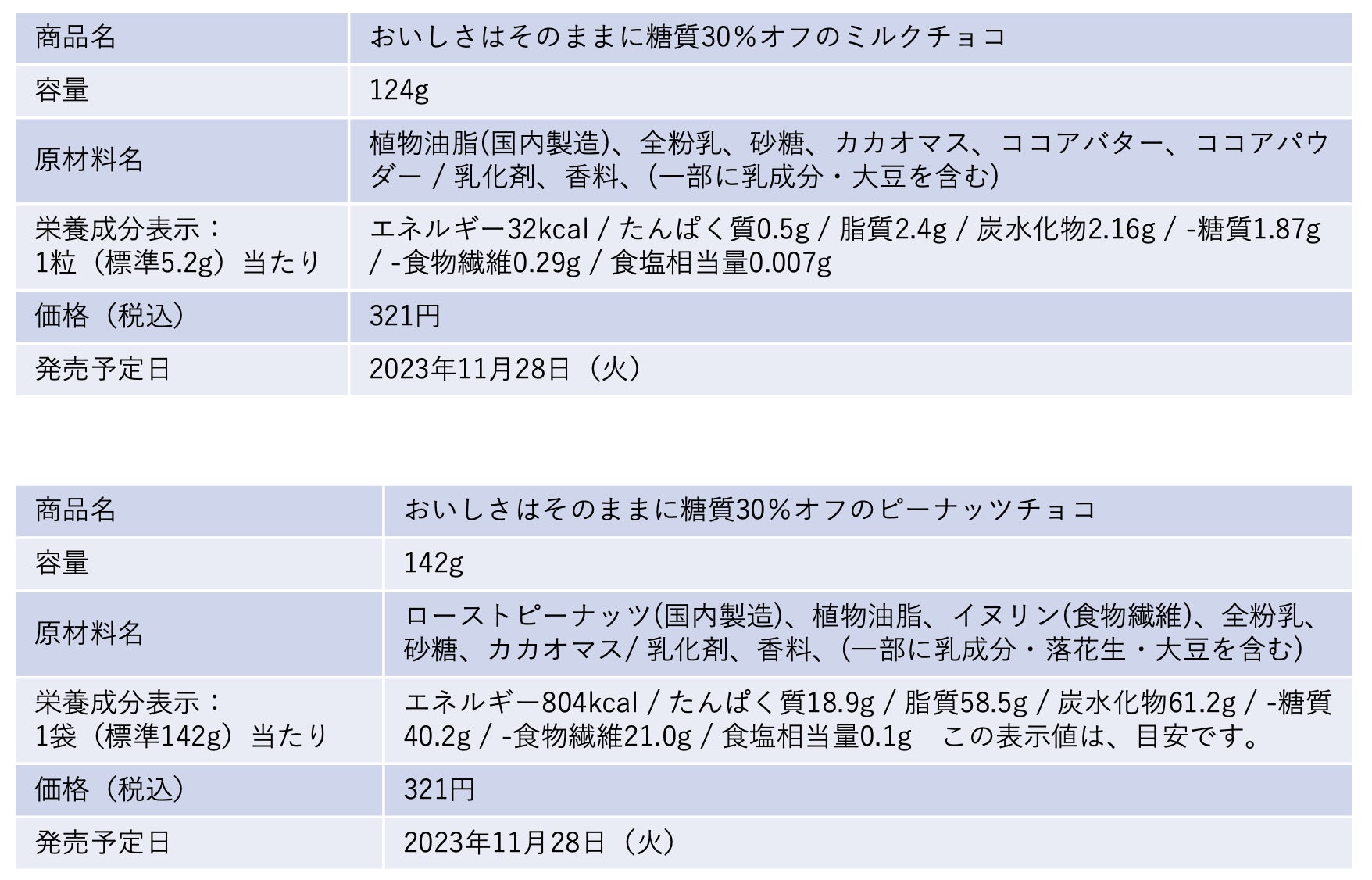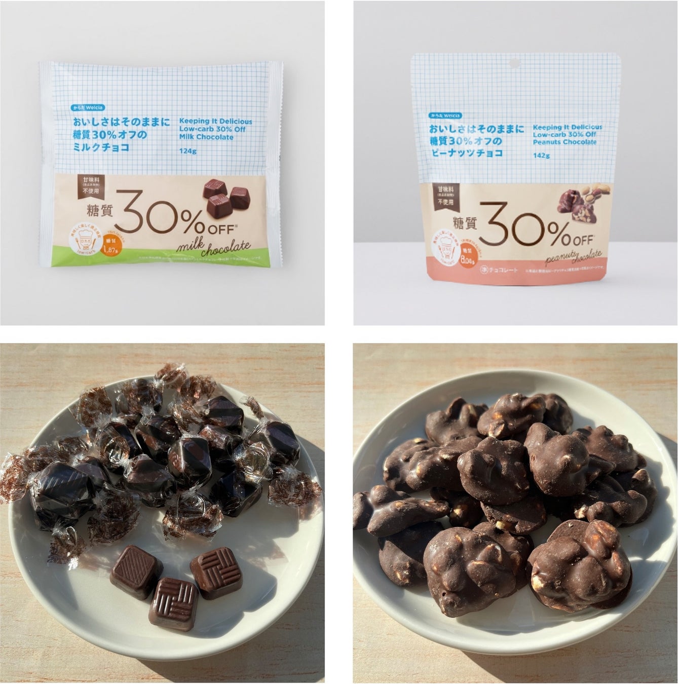 ウエルシア薬局株式会社(本社:東京都千代田区、代表取締役社長:田中 純一、以下ウエルシア)は、プライベートブランド(以下PB)「からだWelcia・くらしWelcia」より、糖質を30%カットした、「おいしさはそのままに糖質30%オフのミルクチョコ」※1、「おいしさはそのままに糖質30%オフのピーナッツチョコ」※2を、2023年11月28日より全国のウエルシア薬局にて発売します。