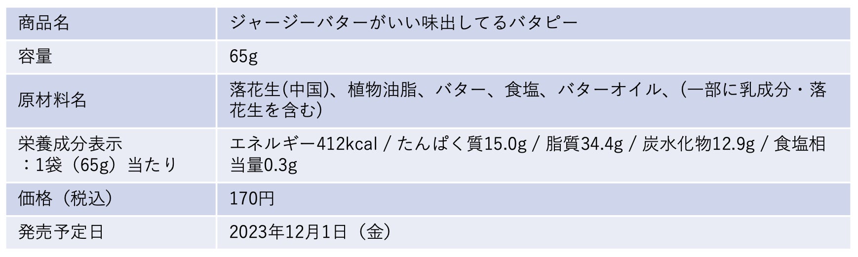 2種類のバターを使用することで、バターの豊かな味、香り、コクが際立つバタピーに仕上げました。