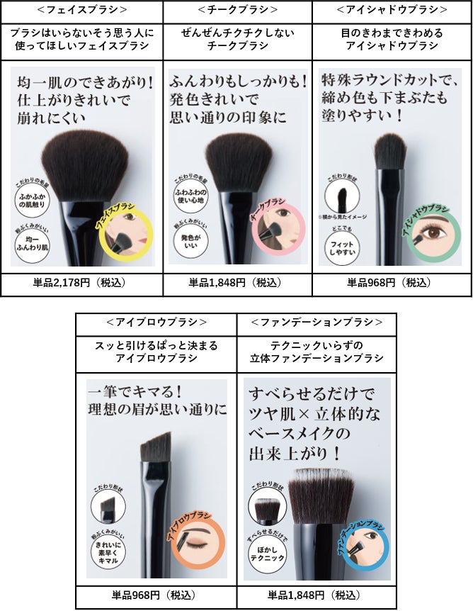 本シリーズは、これまであまりブラシを使ってこなかったブラシメイク初心者から上級者、さらにはメイクアップアーチストからも注目されています。またコスメ批評誌『LDK the Beauty』にてフェイスブラシがベストバイ、 チークブラシ/アイブロウブラシがA評価を獲得しました※1。多くのお客さまから使い心地の良さに共感いただき、累計販売本数が168,000本を突破しました※2。肌当たりと仕上がりがプロ級なメイクブラシ5本を、お得なセット価格にて発売します。感動の使い心地のメイクブラシセットは自分用に、また大切な方へのギフトにぴったりです。