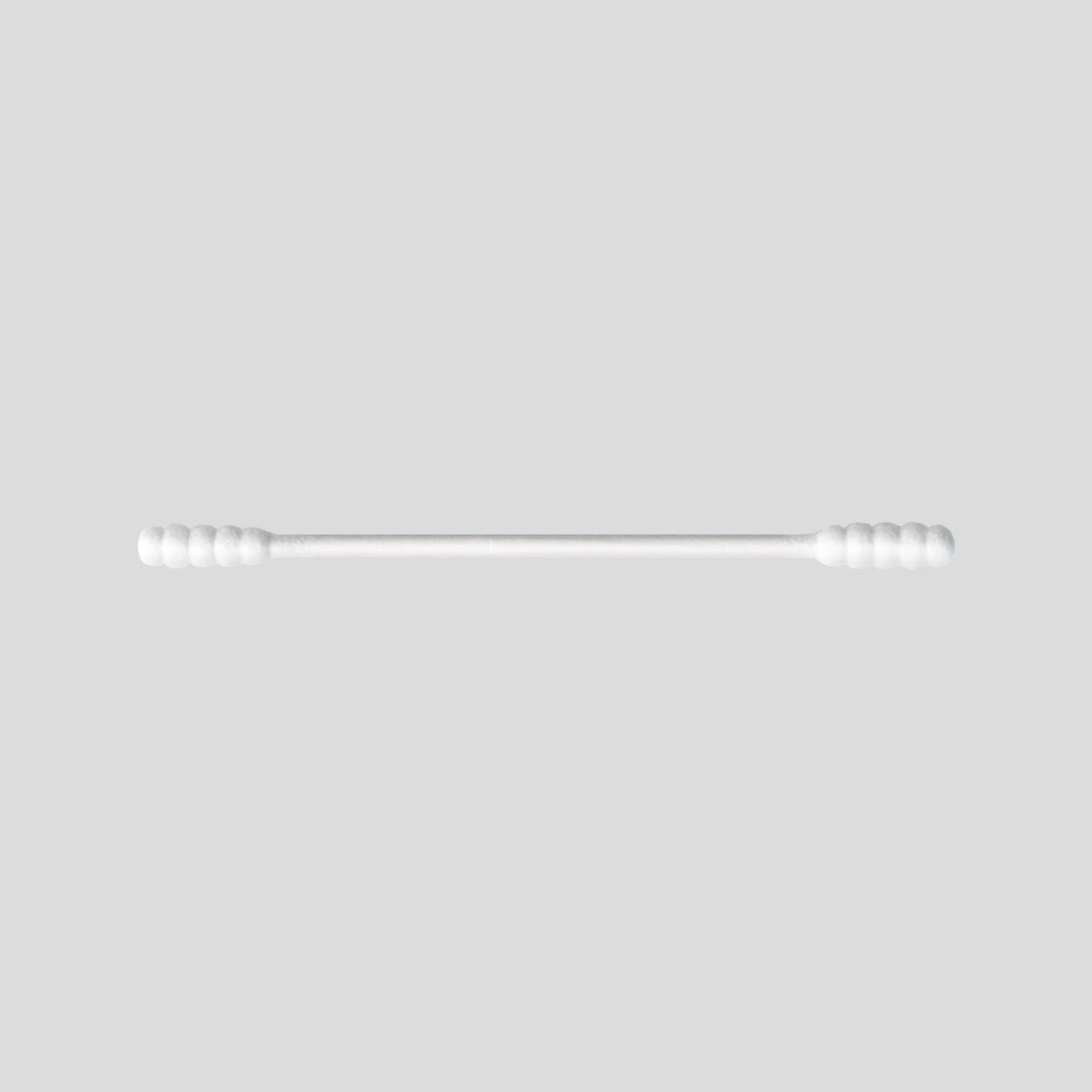 両側凸凹形状で汚れをキャッチしやすい形状です。軸は紙軸を使用。コットン100%。シャワーやプールの後の耳のお手入れにも。