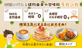 カロリー・糖類0、ラカンカメーカー「吉福思社」原料を使用しています。ロカボ商品なので、カロリーや糖質を気にされている方でも使いやすい甘味料です。